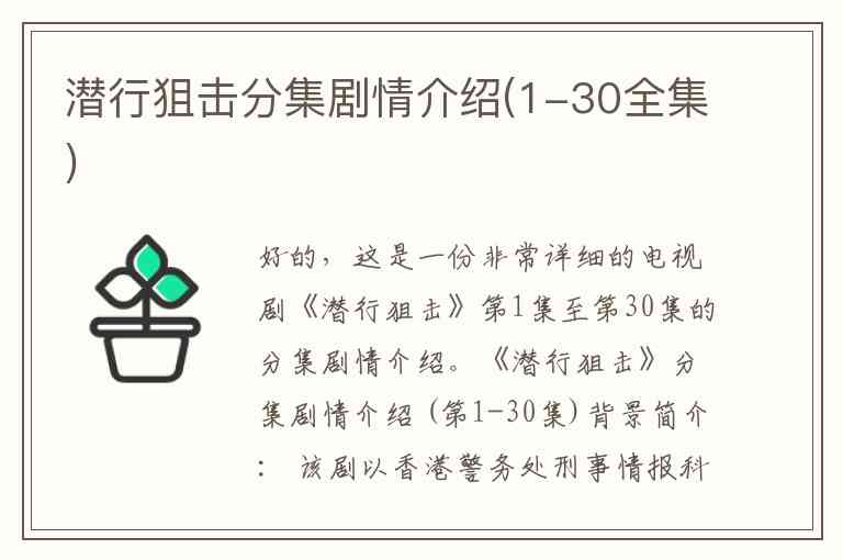 好的,这是一份非常详细的电视剧《潜行狙击》第1集至第30集的分集剧情介绍。