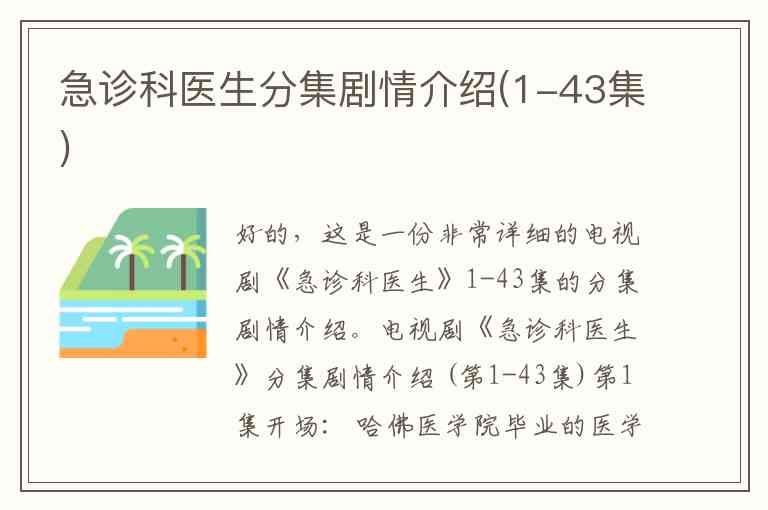 好的,这是一份非常详细的电视剧《急诊科医生》1-43集的分集剧情介绍。