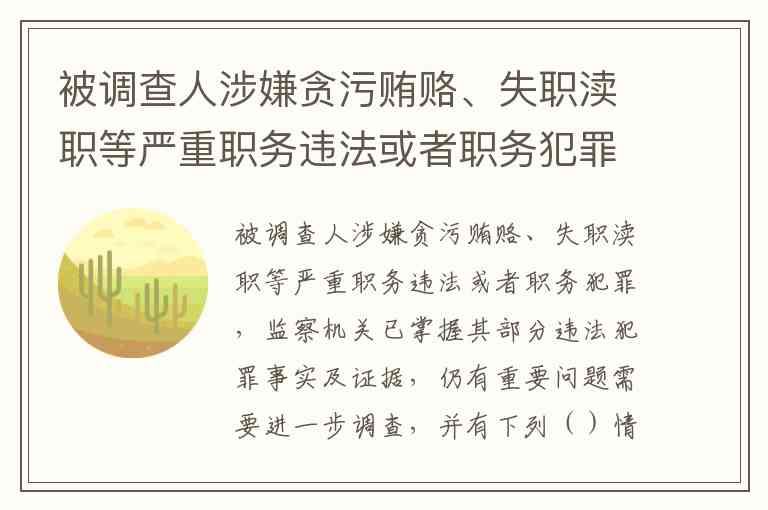 被调查人涉嫌贪污贿赂、失职渎职等严重职务违法或者职务犯罪,监察机关已掌握其部分违法犯罪事实及证据,仍有重要问题需要进一步调查,并有下列()情形之一的,经审批,监察机关依法可以将其留置在特定场所。A.涉及案情重大、复杂的 B.可能逃跑、自杀的 C.可能实施新的犯罪的 D.可能有其他妨碍调查行为的