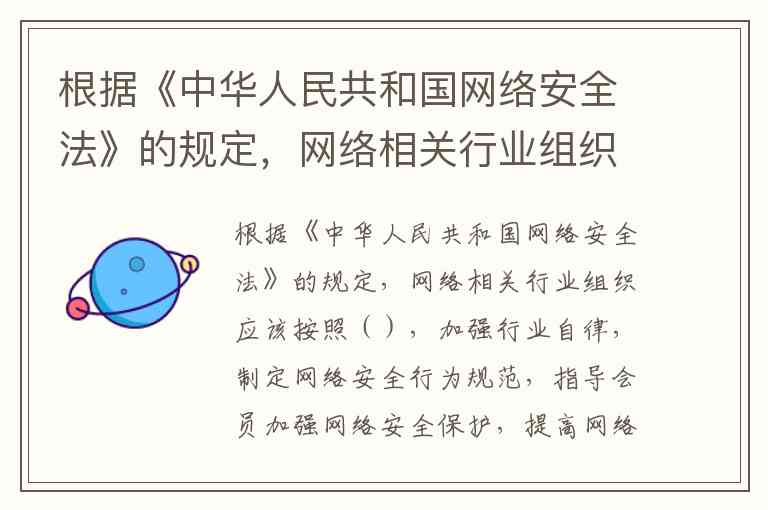 根据《中华人民共和国网络安全法》的规定,网络相关行业组织应该按照(),加强行业自律,制定网络安全行为规范,指导会员加强网络安全保护,提高网络安全保护水平,促进行业健康发展。A.法律 B.行政法规 C.章程