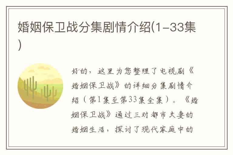 好的,这里为您整理了电视剧《婚姻保卫战》的详细分集剧情介绍(第1集至第33集全集)。