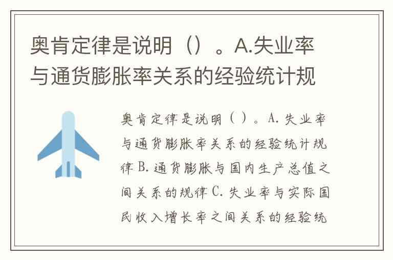 奥肯定律是说明()。A.失业率与通货膨胀率关系的经验统计规律 B.通货膨胀与国内生产总值之间关系的规律 C.失业率与实际国民收入增长率之间关系的经验统计规律 D.人口增长率与失业优选法之间关系的统计规律