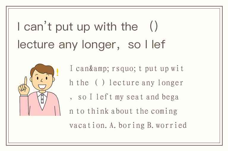 I can’t put up with the ()lecture any longer,so I left my seat and began to think about the coming vacation.A.boring B.worried C.bored D.restless