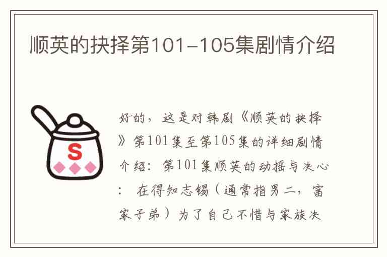 好的,这是对韩剧《顺英的抉择》第101集至第105集的详细剧情介绍: