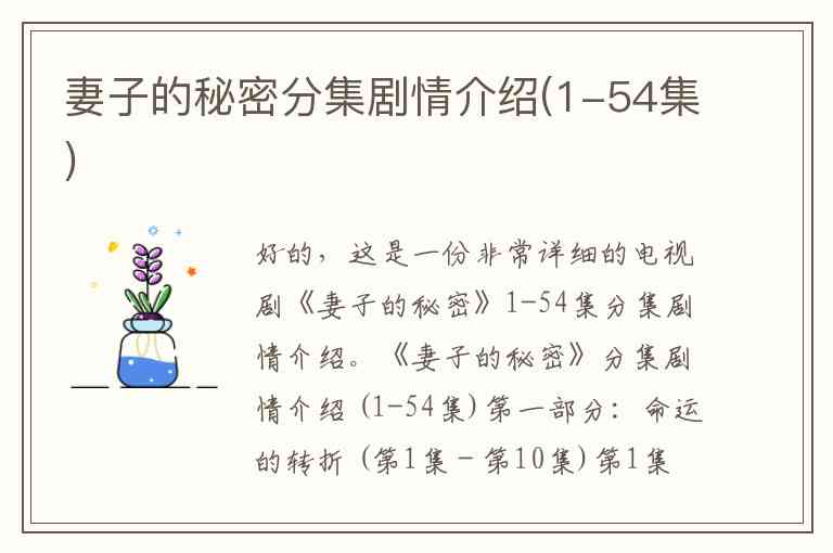 好的,这是一份非常详细的电视剧《妻子的秘密》1-54集分集剧情介绍。