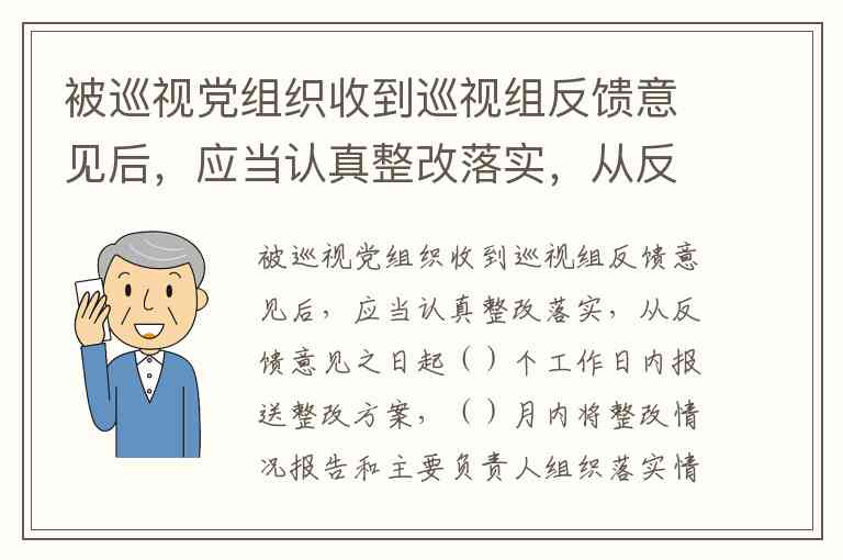 被巡视党组织收到巡视组反馈意见后,需在30个工作日内报送整改方案,并在2个月内提交整改情况报告及主要负责人组织落实情况报告。这一要求明确了巡视整改的时间边界,体现了党内监督的刚性约束。根据最新规定,被巡视党组织需从反馈意见之日起30个工作日内完成整改方案的制定与报送,随后在2个月内全面总结整改落实情况,形成正式报告报送巡视工作领导小组办公室。