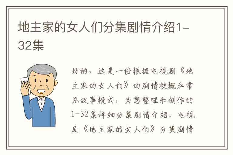 好的,这是一份根据电视剧《地主家的女人们》的剧情梗概和常见故事模式,为您整理和创作的1-32集详细分集剧情介绍。