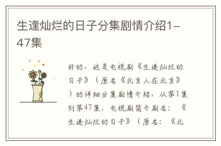 好的,这是电视剧《生逢灿烂的日子》(原名《北京人在北京》)的详细分集剧情介绍,从第1集到第47集。