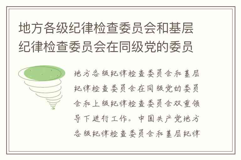地方各级纪律检查委员会和基层纪律检查委员会在同级党的委员会和上级纪律检查委员会双重领导下进行工作。