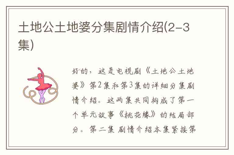 好的,这是电视剧《土地公土地婆》第2集和第3集的详细分集剧情介绍。这两集共同构成了第一个单元故事《桃花缘》的结局部分。