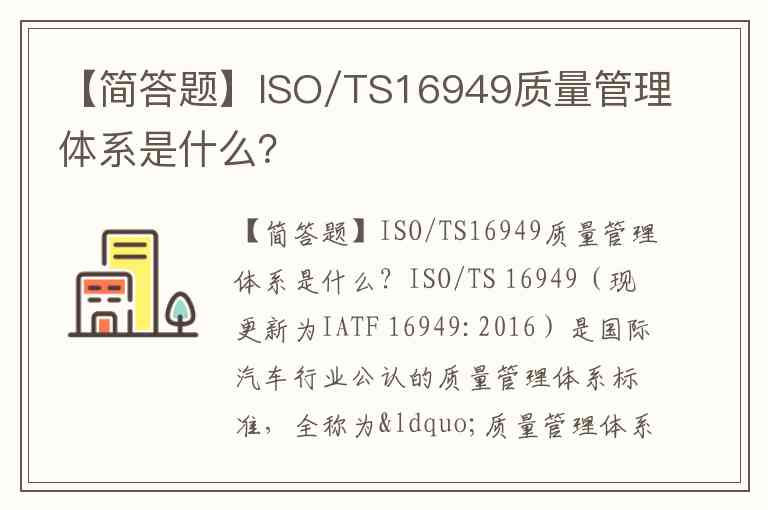 【简答题】ISO/TS16949质量管理体系是什么?
