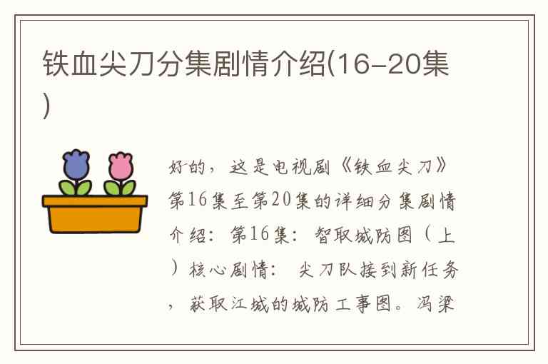 好的,这是电视剧《铁血尖刀》第16集至第20集的详细分集剧情介绍:
