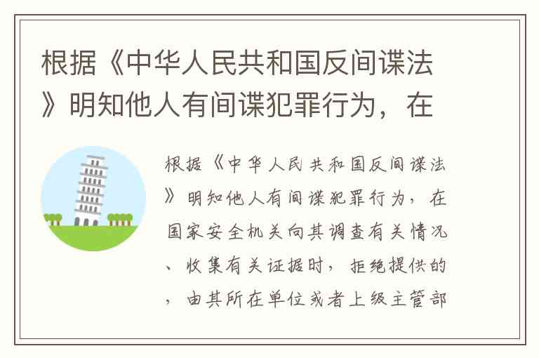 根据《中华人民共和国反间谍法》第二十九条规定,明知他人有间谍犯罪行为,在国家安全机关向其调查有关情况、收集有关证据时拒绝提供的,由其所在单位或者上级主管部门予以处分,或者由国家安全机关处十五日以下行政拘留;构成犯罪的,依法追究刑事责任。这一法律条款明确了公民配合国家安全机关调查的义务,以及拒绝履行该义务时面临的行政处罚上限。