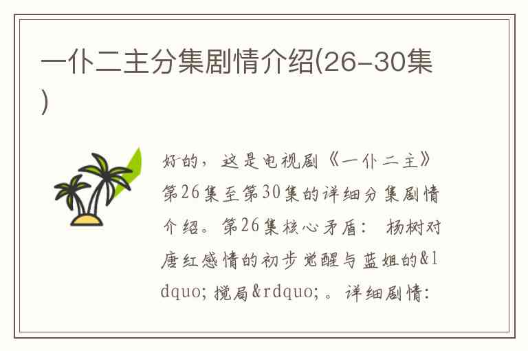 好的,这是电视剧《一仆二主》第26集至第30集的详细分集剧情介绍。