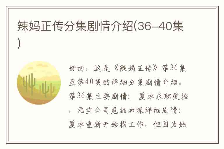 好的,这是《辣妈正传》第36集至第40集的详细分集剧情介绍。