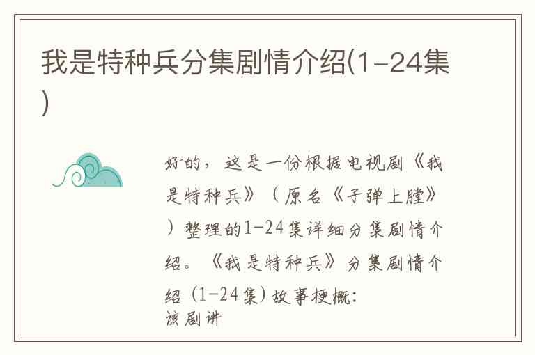好的,这是一份根据电视剧《我是特种兵》(原名《子弹上膛》)整理的1-24集详细分集剧情介绍。