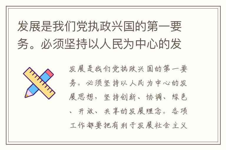 发展是我们党执政兴国的第一要务。必须坚持以人民为中心的发展思想,坚持创新、协调、绿色、开放、共享的发展理念。各项工作都要把有利于发展社会主义社会的生产力,有利于增强社会主义国家的综合国力,有利于提高人民的生活水平,作为总的出发点和检验标准,尊重劳动、尊重知识、尊重人才、尊重创造,做到发展为了人民、发展依靠人民、发展成果由人民共享。( )