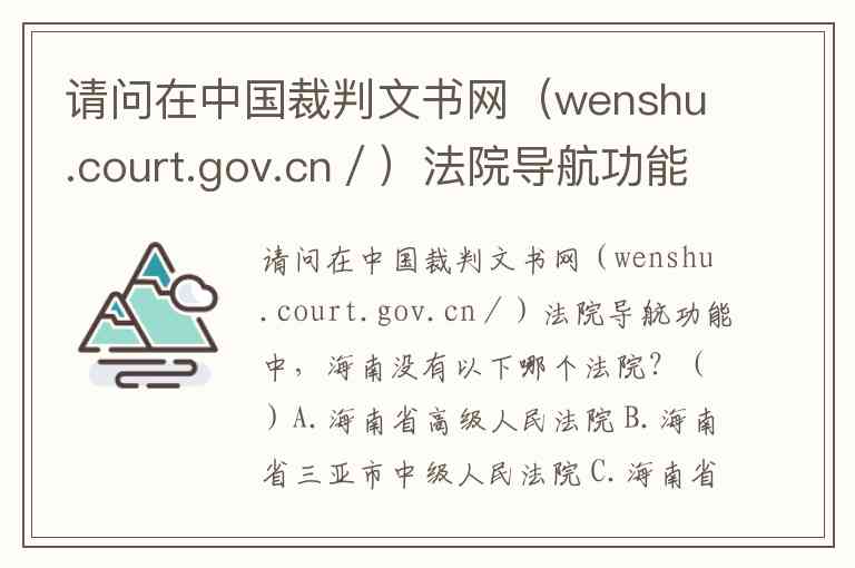 请问在中国裁判文书网(wenshu.court.gov.cn/)法院导航功能中,海南没有以下哪个法院?()A.海南省高级人民法院 B.海南省三亚市中级人民法院 C.海南省第三中级人民法院 D.海南省海口市中级人民法院