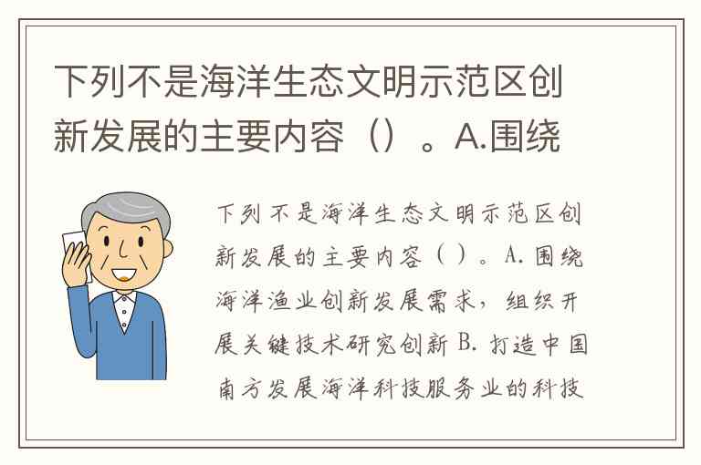 而B项“打造南方海洋科技服务业科技城”更偏向区域产业规划(如珠海、海南的海洋经济政策),属于海洋经济发展示范区的创新方向(如山东威海、日照示范区的科创布局),而非海洋生态文明示范区的核心任务。两者虽都涉及海洋发展,但前者侧重生态保护与绿色转型,后者侧重产业创新与经济增长,存在明确政策边界。