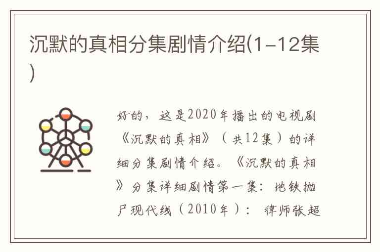 好的,这是2020年播出的电视剧《沉默的真相》(共12集)的详细分集剧情介绍。