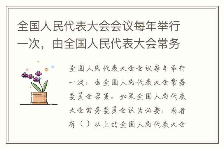 全国人民代表大会会议每年举行一次,由全国人民代表大会常务委员会召集。根据宪法和法律规定,当全国人民代表大会常务委员会认为必要,或者有五分之一以上的全国人民代表大会代表提议时,可以临时召集全国人民代表大会会议。这一规定在《中华人民共和国全国人民代表大会组织法》和全国人大议事规则中均有明确表述,体现了国家权力机关运作的规范性与灵活性。