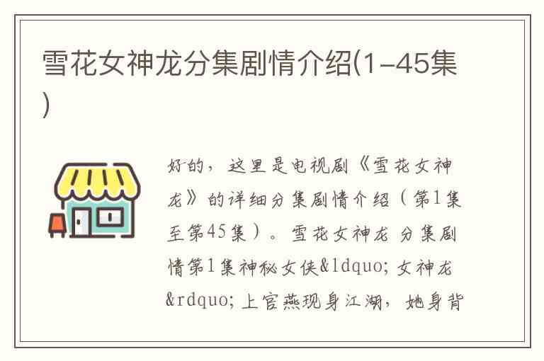 好的,这里是电视剧《雪花女神龙》的详细分集剧情介绍(第1集至第45集)。