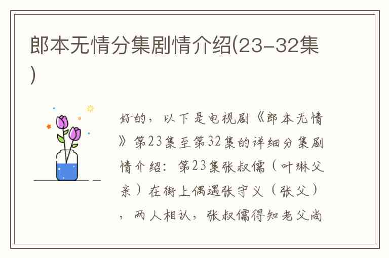 好的,以下是电视剧《郎本无情》第23集至第32集的详细分集剧情介绍: