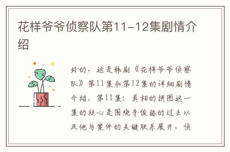好的,这是韩剧《花样爷爷侦察队》第11集和第12集的详细剧情介绍。