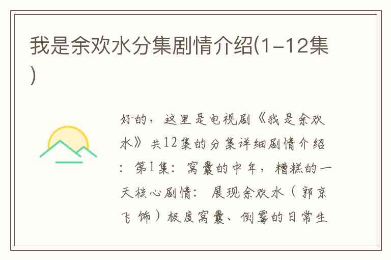 好的,这里是电视剧《我是余欢水》共12集的分集详细剧情介绍: