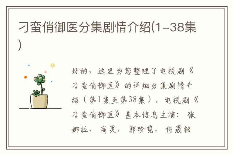 好的,这里为您整理了电视剧《刁蛮俏御医》的详细分集剧情介绍(第1集至第38集)。