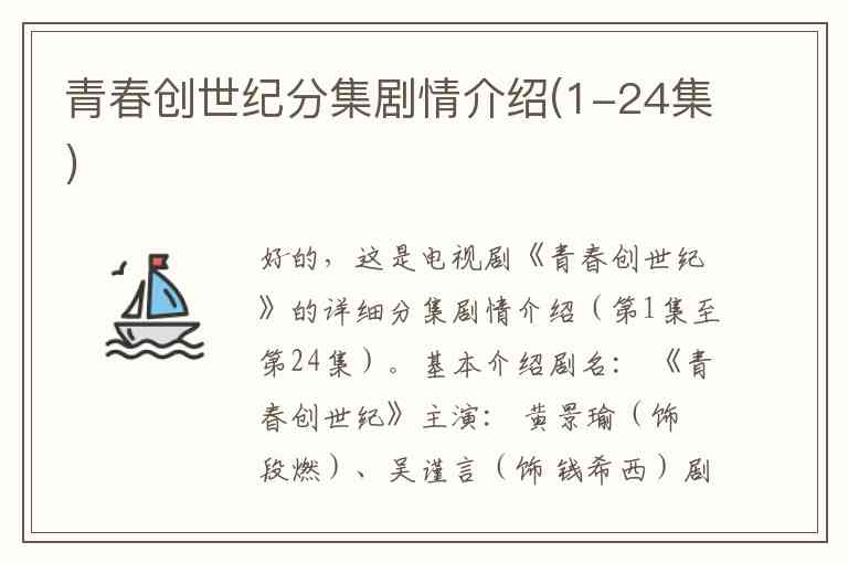 好的,这是电视剧《青春创世纪》的详细分集剧情介绍(第1集至第24集)。