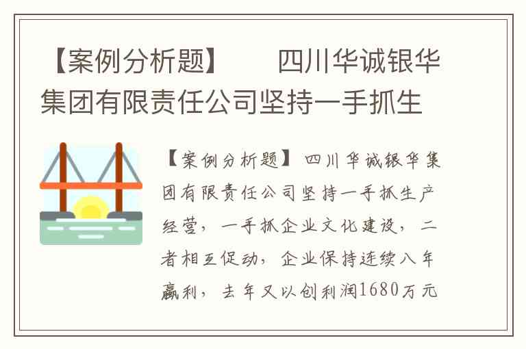 【案例分析题】 四川华诚银华集团有限责任公司坚持一手抓生产经营,一手抓企业文化建设,二者相互促动,企业保持连续八年蠃利,去年又以创利润1680万元居省纺织行业第二位;保持了省优秀企业、省文明单位称号,创全国模范职工之家获得成功。 (一)认识到位。银华公司位于四川盆地中部射洪县,写“前不见古人”的陈子昂与酿“悠悠岁月酒”的沱牌公司是其亮丽之处。随着经济体制改革的深化,银华这个棉纺织企业同大多数国有纺织企业一样,企业管理和发展出现了严重困难,问题的根源是什么?出路又何在?公司调查分析后认为,社会的巨大变革、企业生存空间和职工心态的变化,使得计划经济时代形成的理念、制度、方法已成为桎梏,必须以改革的精神,把创建先进的企业文化引入经营管理。 高度的重视带来了自觉的行动。九十年代初至今,银华都把企业文化建设摆在头等位置常抓不懈。公司董事长、党委书记、总经理胥明东说:“知识经济时代最显着的特征就是文化对生 起着巨大的促进作用。创建企业文化形成的文化力如凝聚力、创造力等是公司宝贵的无形资产。在新的世纪,拥有这种文化优势,也就拥有竞争优势。”因而,全公司各部门高度一致,一把手抓两手,两手都要硬。 (二)机制到位。任何工作仅靠自觉是不够的。银华公司创建企业文化狠抓了各种机制的建立和完善。首先,考核机制。加强考核是企业文化建设由虚变实、由软变硬的重要手段。结合企业实际,银华公司出台了15个实施细则,实行量化考核。其次,民主管理监督机制。公司把企业的 量、质量、销售收入、利润、成本、费用、发展规划等重大情况定期公布,经过摸索形成公司、分厂(部门)、轮班三级公开制度,职工对应知的事情了如指掌。再次是完善分配制度,各个岗位元的工作全部量化,职工对照公开栏公布的个人奖扣、 质等情况就能算出自己本月收入。三是人才选拨机制。银华坚持实施四个工程,即引进一批、自学成才一批、联合办学培训一批、送大专院校深造一批,仅九五期间就造就人才560人。在选择使用上,公司坚持德才兼备的原则,面向市场竞争择优,实行公推公选制度。 (三)教育到位。银华公司认企业文化的核心是培育先进的企业精神,并在职工的工作中得到体现,培育的途径则是教育。(1)企业精神是企业文化的灵魂。经过长期积累和不断总结提炼,银华公司形成勤奋、求实、开拓、创新的企业精神。职工日常行为是企业文化的具体体现。银华公司注重引导和规范。首先,要求各级党组织和管理人员务必掌握各自负责的情况,准确把握企业总体情况和职工具体情况。其次,以先进典型引导群体行为。公司建立劳模培养制度,每年评选百名劳模,年初各部门报培养物件,对培养物件的数量、质量等工作情况和思想动态月月追踪,及时向本人反馈意见和建议。公司还常年开展巾帼建功、百千万无疵、操作明星、党员先锋、双争等竞赛。(2)抓住学习不放松。公司按照学习型企业的要求改造企业。坚持政治学习,每月两次。公司年年都有职工培训规划,月、季有落实,操作技术培训、成本核算培训、通讯报道员培训、纺织基础培训等贯穿全年始终,形式多样、特色鲜明。 (四)投入到位。银华公司胥总认为,企业文化建设之所以叫做一把手工程,是因它同经济工作一样,投入是关键,没有投入就没有出。(1)投入包括人、财、物。公司虽然近几年大幅精简非生 人员,但政工线的力量并没有削弱,相反还得到加强。公司有从事文化建设的职能部门和人员,分厂有专职总支、支部副书记、分工会主席、政工干事,各司其职、各负其责,党政工团齐抓共管。(2)银华公司始终坚持按比例投入企业文化阵地建设。仅九五期间,公司就投资450馀万元,先後实施厂门形象工程、生 区绿化工程、生活区亮化美化工程、厂区道路硬化工程、生 现场蜂窝除尘工程、锅炉脱硫除尘工程等专案,厂大门内外宽敞整洁、气势宏伟,蓝底白字的企业精神、质量方针、质量承诺牌巍然耸立,宣传橱窗色彩斑斓,阅报栏几十张最新的报纸供人阅读,黑板报写着各班职工奖惩及质量数据。入夜,生活区、职工活动中心、图书阅览室霓虹闪烁、一片通明。形成了独具银华特色的企业文化氛围。 银华公司是怎样认识到企业文化的作用的?