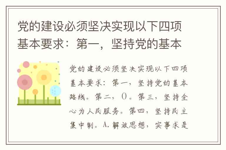 党的建设必须坚决实现以下四项基本要求:第一,坚持党的基本路线。第二,()。第三,坚持全心为人民服务。第四,坚持民主集中制。A.解放思想,实事求是 B.坚持一切从实际出发 C.坚持解放思想,实事求是,与时俱进