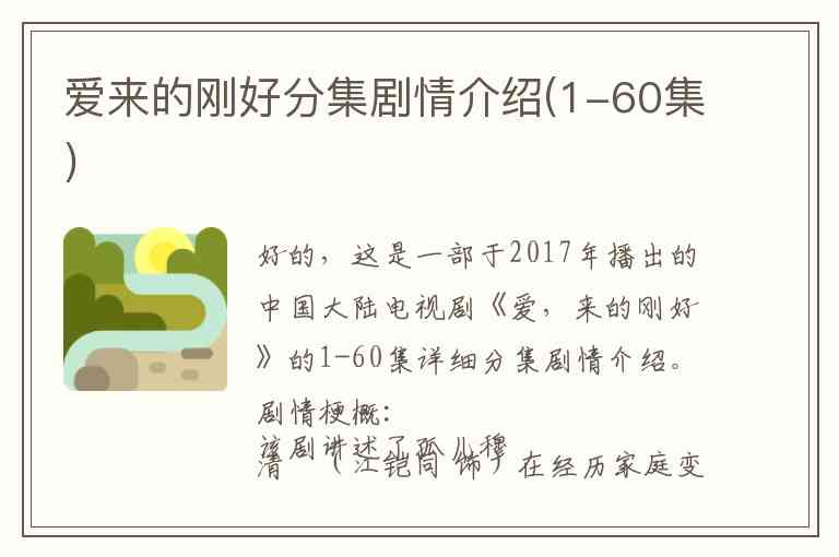好的,这是一部于2017年播出的中国大陆电视剧《爱,来的刚好》的1-60集详细分集剧情介绍。