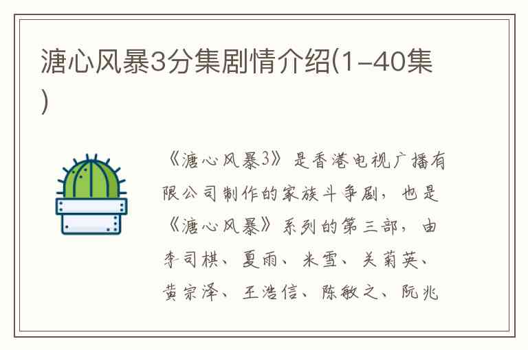 以下是《溏心风暴3》第1集至第40集的详细分集剧情介绍: