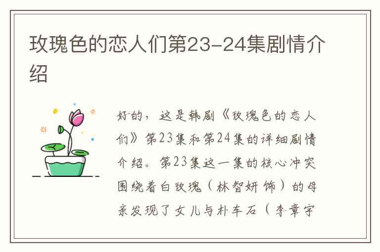 好的,这是韩剧《玫瑰色的恋人们》第23集和第24集的详细剧情介绍。