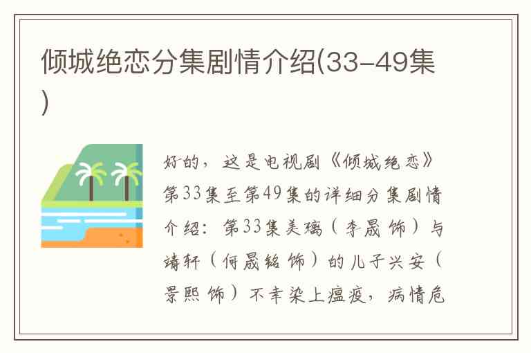 好的,这是电视剧《倾城绝恋》第33集至第49集的详细分集剧情介绍: