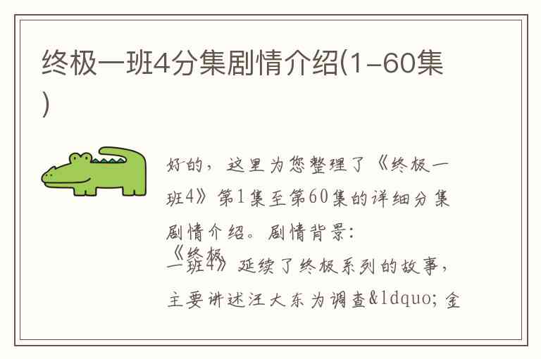 好的,这里为您整理了《终极一班4》第1集至第60集的详细分集剧情介绍。