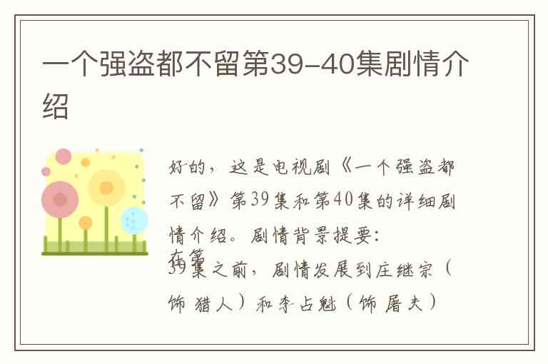 好的,这是电视剧《一个强盗都不留》第39集和第40集的详细剧情介绍。