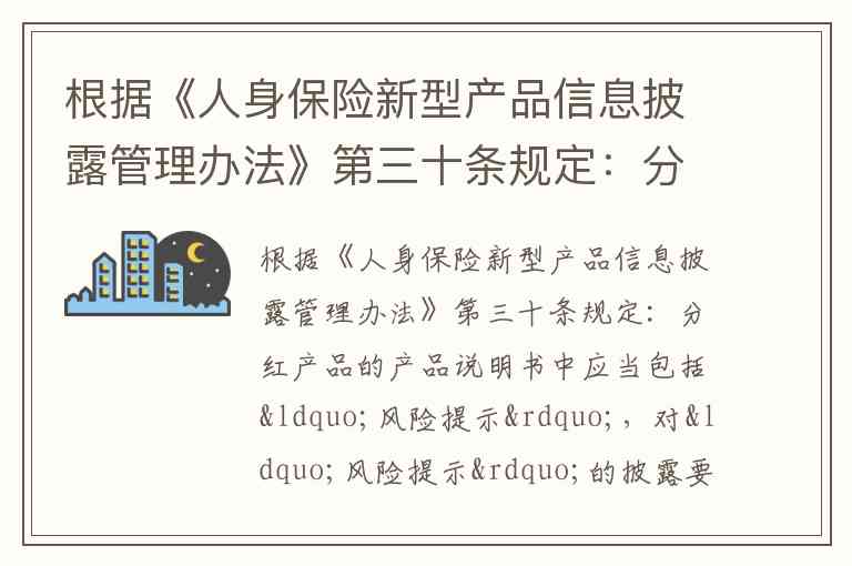 根据《人身保险新型产品信息披露管理办法》第三十条规定:分红产品的产品说明书中应当包括“风险提示”,对“风险提示”的披露要求是:“在产品说明书封面显著位置用比正文至少大一号的黑体字提示该产品为分红保险,其()是不确定的。其中,采用增额方式分红的,应当特别提示()的领取条件。”A.红利分配;终了红利 B.红利方案;终了红利 C.红利政策;期中红利 D.红利分配;期中红利