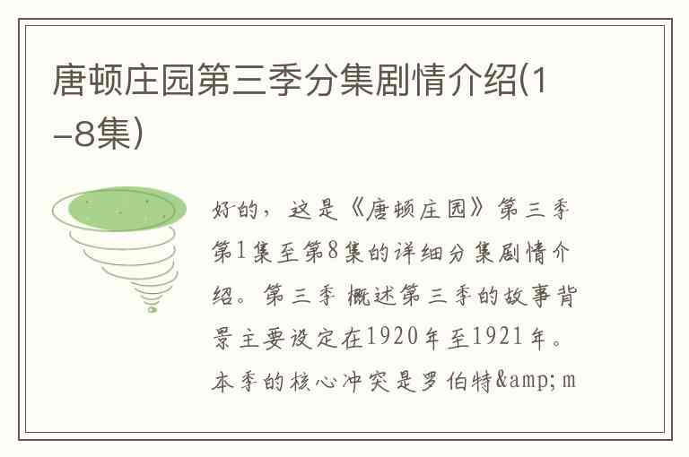 好的,这是《唐顿庄园》第三季第1集至第8集的详细分集剧情介绍。