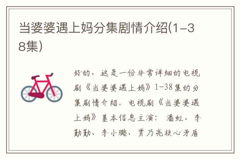 好的,这是一份非常详细的电视剧《当婆婆遇上妈》1-38集的分集剧情介绍。