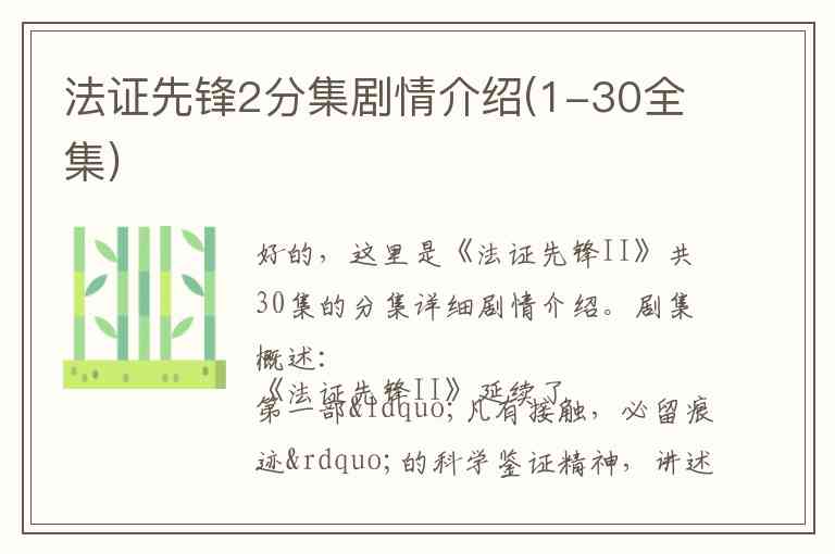 好的,这里是《法证先锋II》共30集的分集详细剧情介绍。
