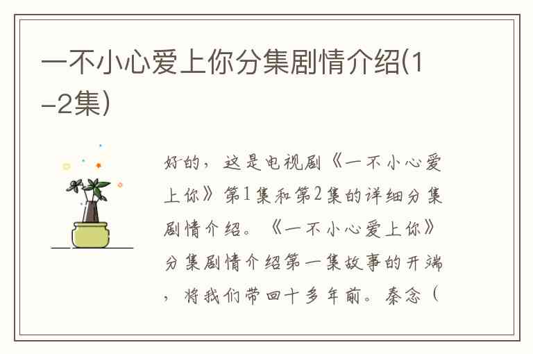 好的,这是电视剧《一不小心爱上你》第1集和第2集的详细分集剧情介绍。