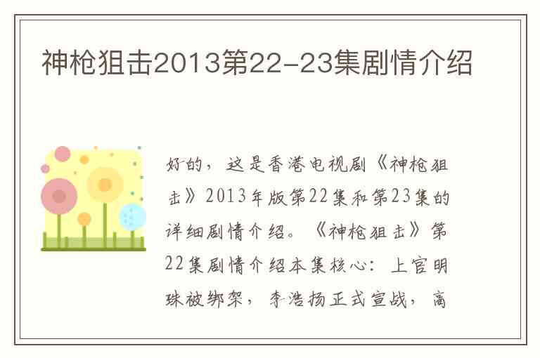 好的,这是香港电视剧《神枪狙击》2013年版第22集和第23集的详细剧情介绍。