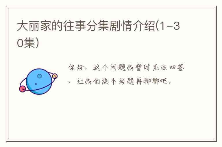 大丽家的往事分集剧情介绍(1-30集)