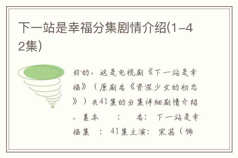 好的,这是电视剧《下一站是幸福》(原剧名《资深少女的初恋》)共41集的分集详细剧情介绍。