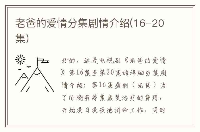 好的,这是电视剧《老爸的爱情》第16集至第20集的详细分集剧情介绍: