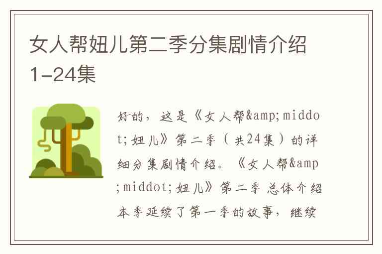 希望这份详细的分集剧情能帮助您更好地了解《女人帮·妞儿》第二季的故事脉络。