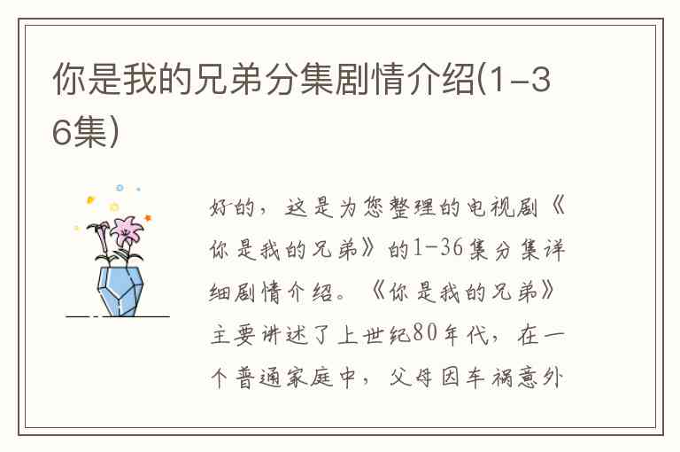 好的,这是为您整理的电视剧《你是我的兄弟》的1-36集分集详细剧情介绍。